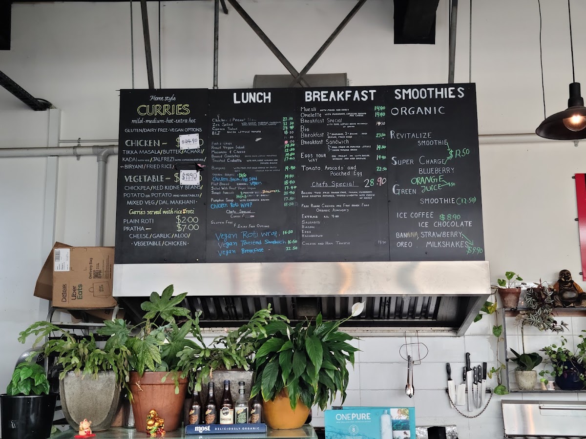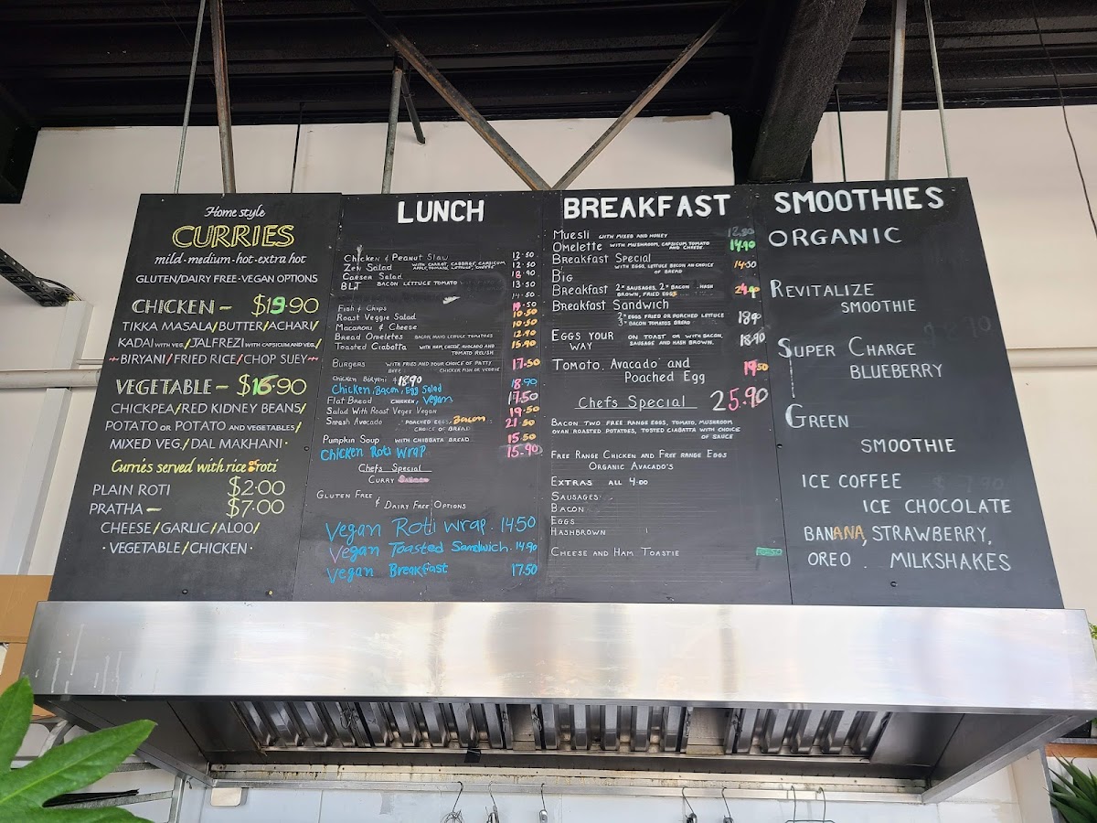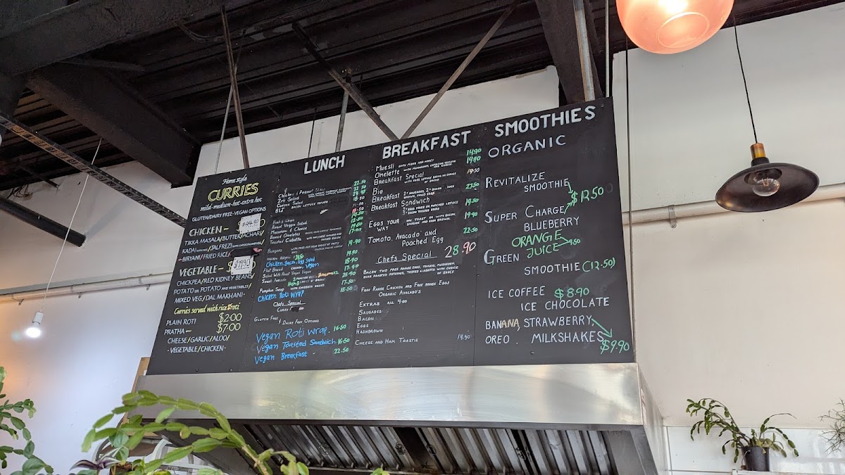 If you're craving something spicy, their Curries include classic favorites like Potato and Chickpea, Chicken Tikka Masala, Mixed Vegetable, and Butter Chicken, each packed with rich, authentic flavors. For a refreshing beverage, choose from a variety of cold drinks, including Pure NZ Water, freshly squeezed Orange Juice, or soft drinks, alongside Flat White and other organic beverages.